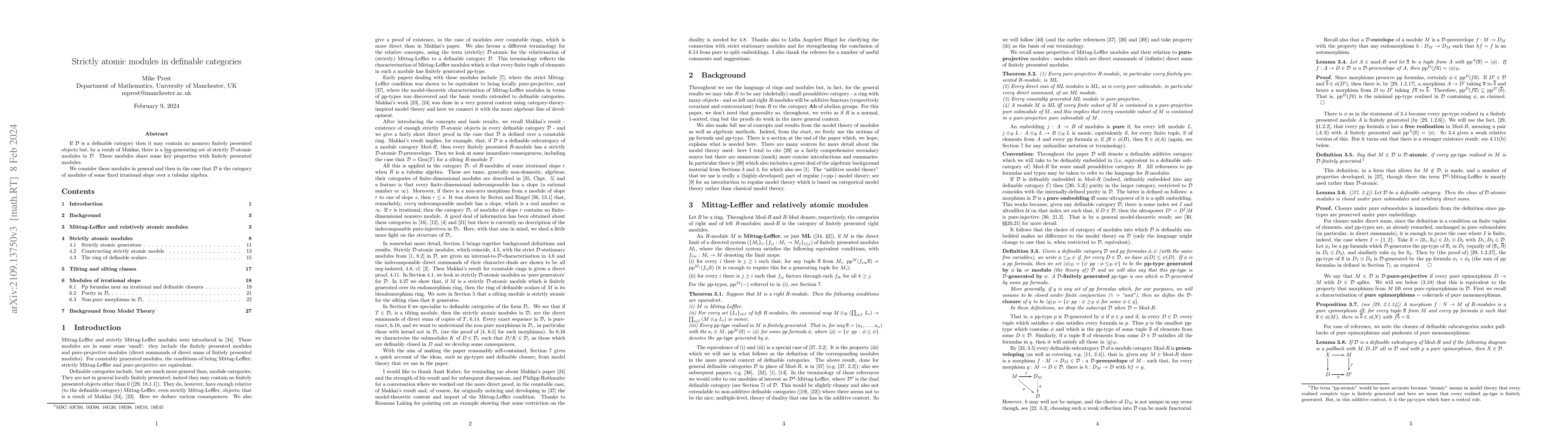 If ${\cal D}$ is a definable category then it may contain no nonzero finitely presented modules but, by a result of Makkai, there is a $\varinjlim$-generating set of strictly ${\cal D}$-atomic modules. These modules share some key properties of finitely presented modules. We consider these modules in general and then in the case that ${\cal D}$ is the category of modules of some fixed irrational slope over a tubular algebra.