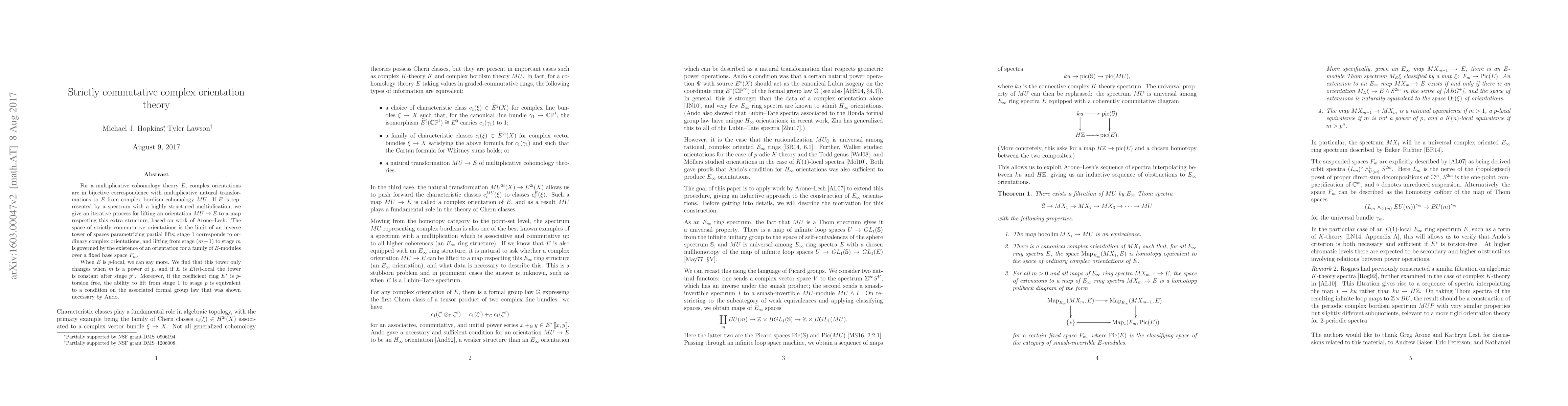 For a multiplicative cohomology theory E, complex orientations are in bijective correspondence with multiplicative natural transformations to E from complex bordism cohomology MU. If E is represented by a spectrum with a highly structured multiplication, we give an iterative process for lifting an orientation MU -> E to a map respecting this extra structure, based on work of Arone-Lesh. The space of strictly commutative orientations is the limit of an inverse tower of spaces parametrizing partial lifts; stage 1 corresponds to ordinary complex orientations, and lifting from stage (m-1) to stage m is governed by the existence of a orientation for a family of E-modules over a fixed base space F_m. When E is p-local, we can say more. We find that this tower only changes when m is a power of p, and if E is E(n)-local the tower is constant after stage p^n. Moreover, if the coefficient ring E^* is p-torsion free, the ability to lift from stage 1 to stage p is equivalent to a condition on the associated formal group law that was shown necessary by Ando.