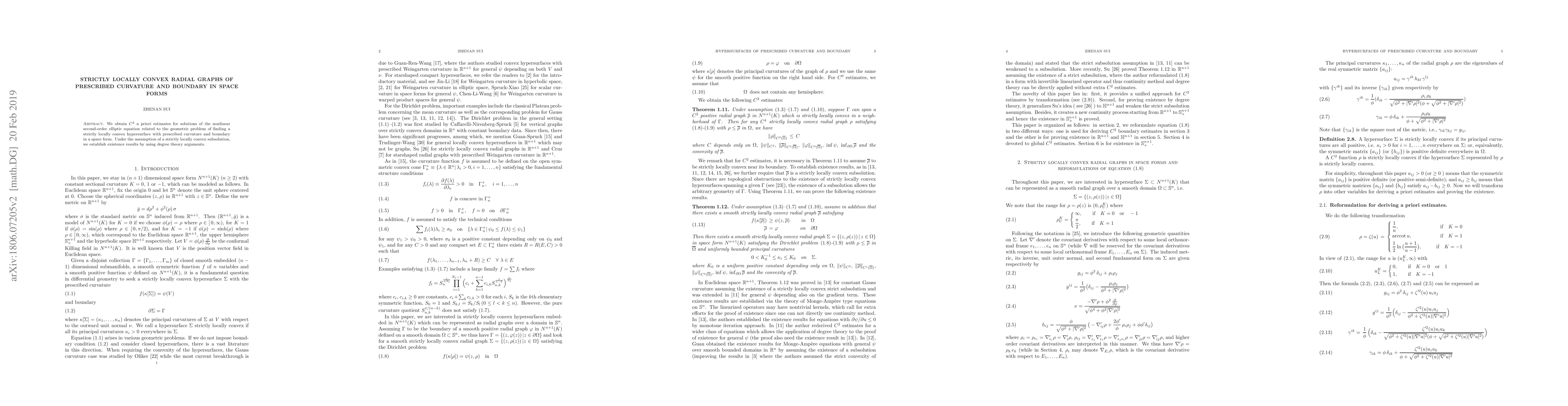 We obtain $C^2$ a priori estimates for solutions of the nonlinear second-order elliptic equation related to the geometric problem of finding a strictly locally convex hypersurface with prescribed curvature and boundary in a space form. Under the assumption of a strictly locally convex subsolution, we establish existence results by using degree theory arguments.