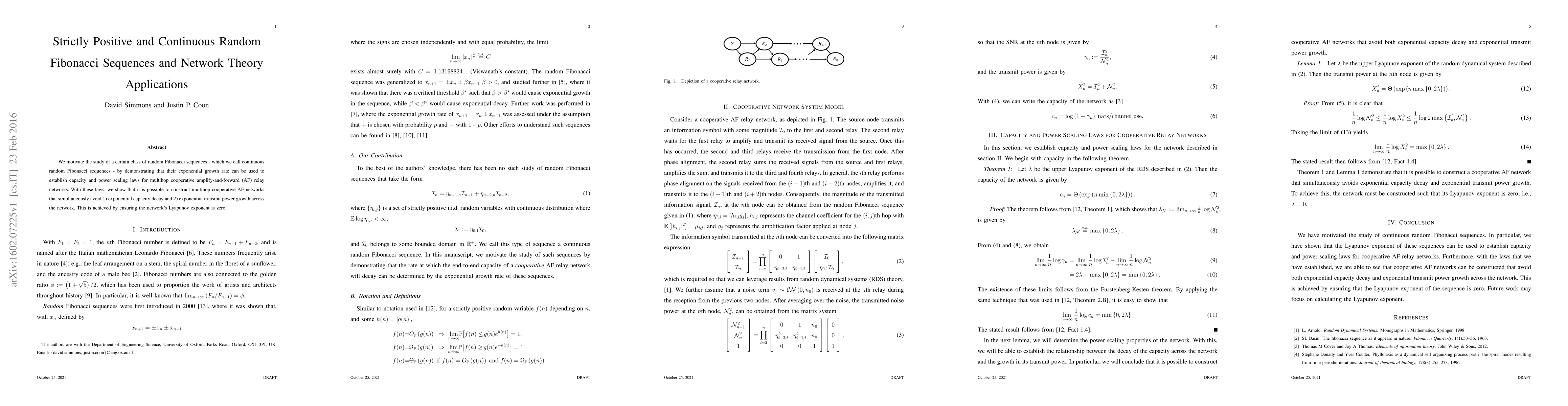 Researchers propose a new class of random Fibonacci sequences to optimize capacity and power scaling in multihop relay networks. Their findings show that these sequences can enable exponential growth without decay or explosive transmit power.