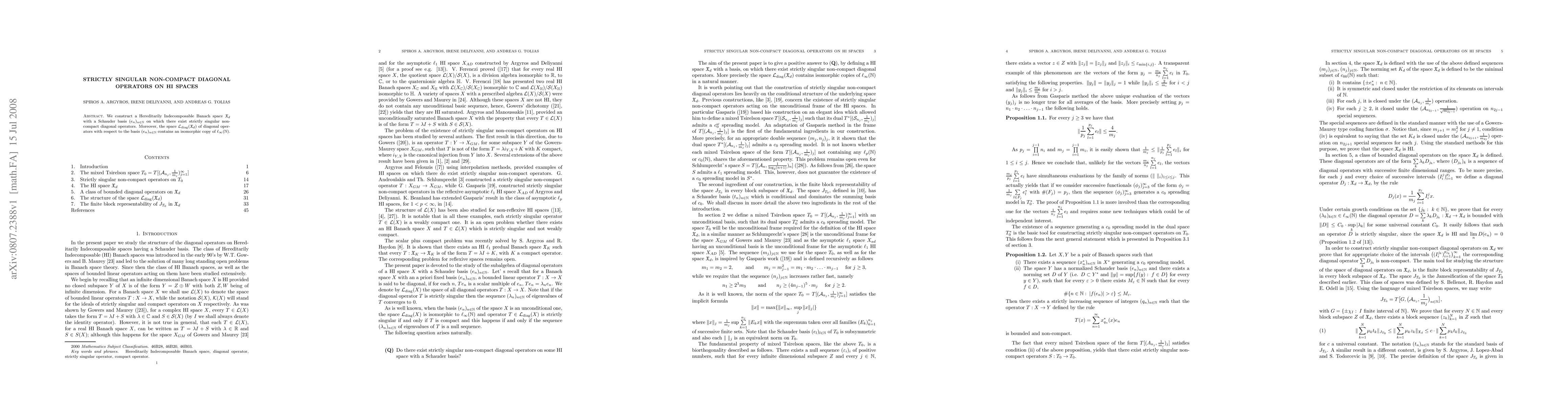 This paper constructs a Hereditarily Indecomposable Banach space $\eqs_d$ with a Schauder basis that supports strictly singular non-compact diagonal operators, and shows that the space of diagonal operators on this space contains an isomorphic copy of $\ell_{\infty}(\N)$.