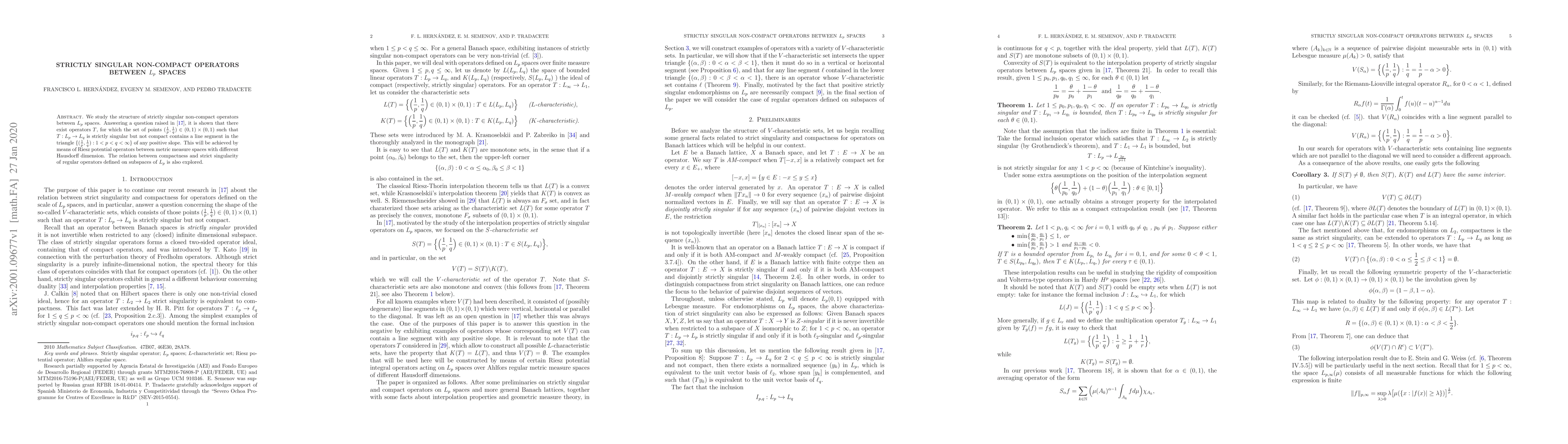 This paper investigates strictly singular non-compact operators between $L_p$ spaces, demonstrating the existence of operators with a line segment of strictly singular but non-compact mappings between $L_p$ and $L_q$ in the specified triangle. The study utilizes Riesz potential operators and explores the relationship between compactness and strict singularity in regular operators on $L_p$ subspaces.
