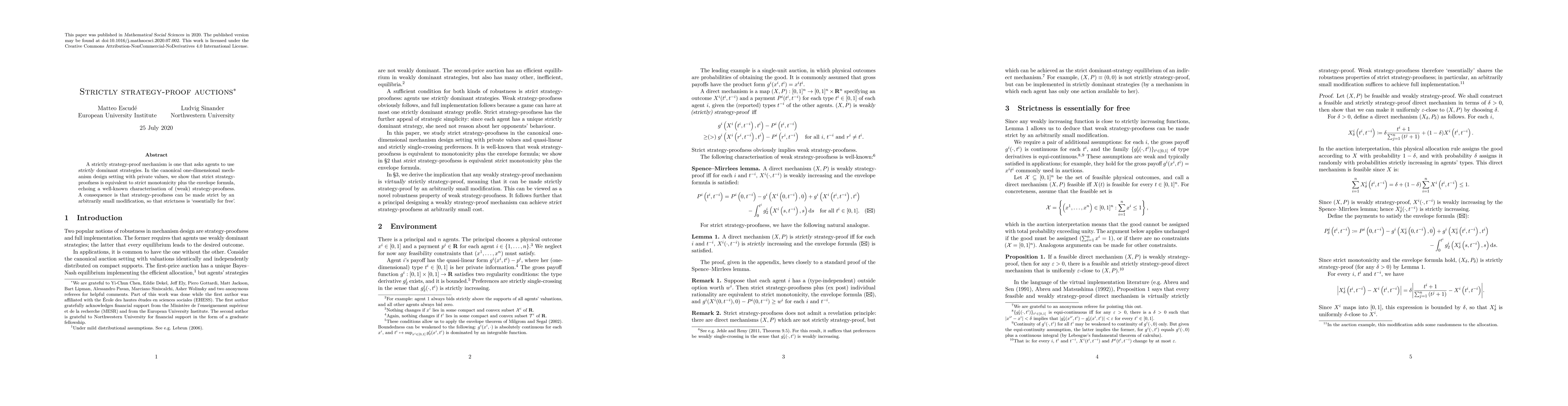 Research shows that strictly strategy-proof auctions can achieve strictness with a minimal modification, making it 'essentially for free', while maintaining equivalent performance to strategy-proof mechanisms.