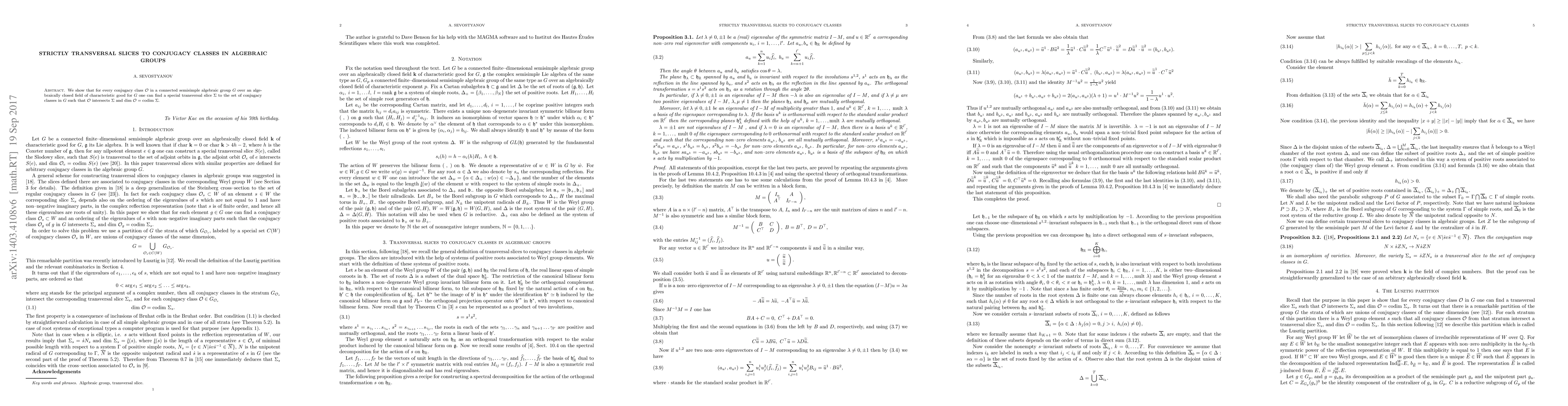 We show that for every conjugacy class O in a connected semisimple algebraic group G over a field of characteristic good for G one can find a special transversal slice S to the set of conjugacy classes in G such that O intersects S and dim O = codim S.