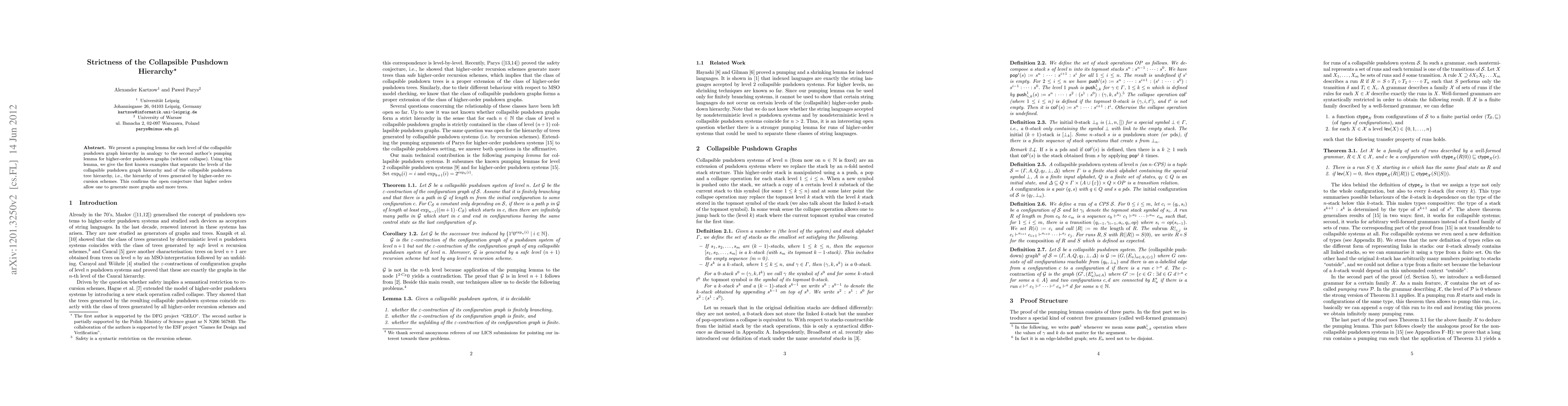 This paper introduces a pumping lemma for the collapsible pushdown graph hierarchy, providing the first known examples that separate its levels, confirming the conjecture that higher-order recursion schemes generate more complex graphs and trees.