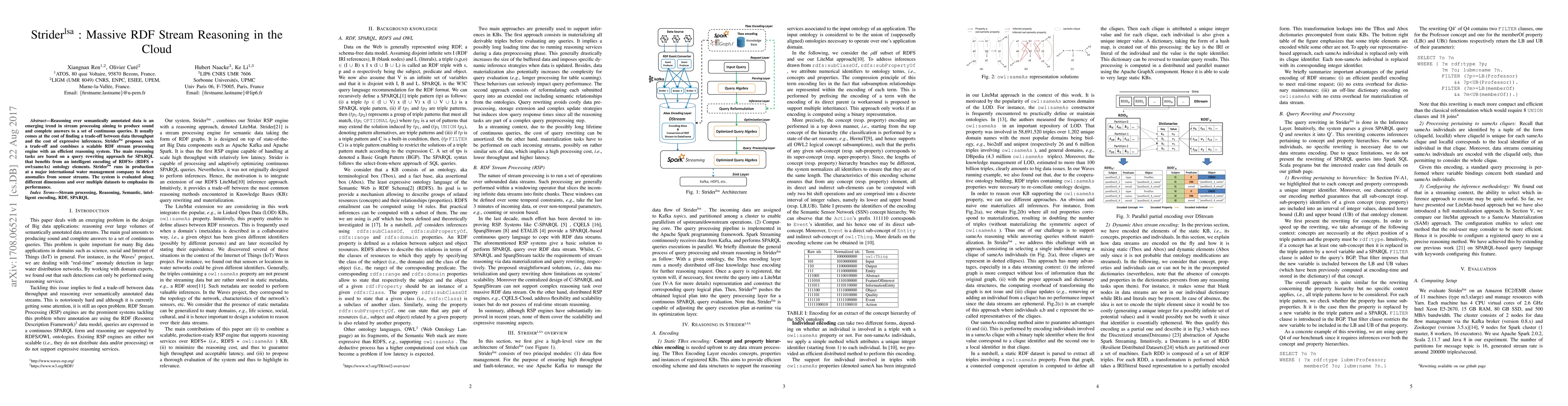 Strider-lsa combines a scalable RDF stream processing engine with an efficient reasoning system for SPARQL query rewriting, focusing on RDFS+ (RDFS + owl:sameAs) ontology elements. It employs a query rewriting approach and intelligent encoding of owl:sameAs properties to balance data throughput and expressive inference costs.