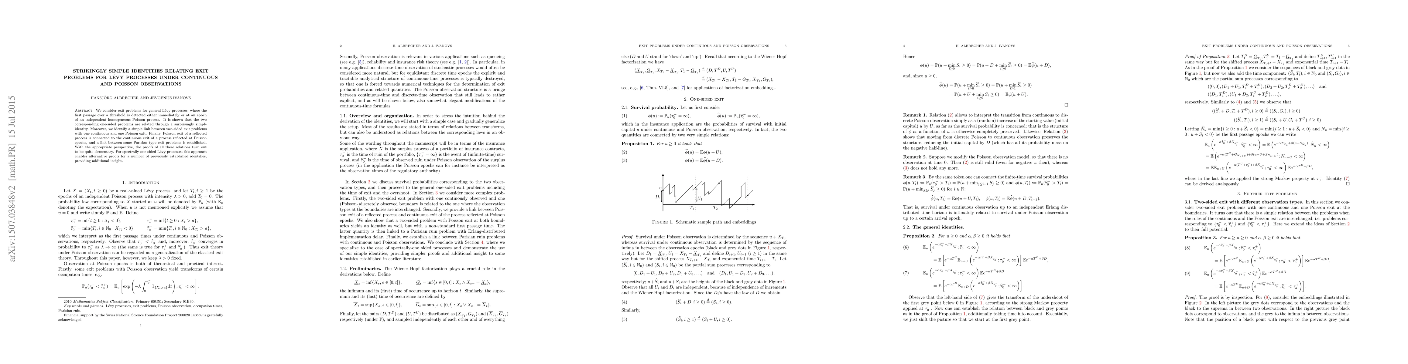 The paper establishes surprisingly simple identities relating exit problems for general Lévy processes under continuous and Poisson observations, providing alternative insights into previously established results.