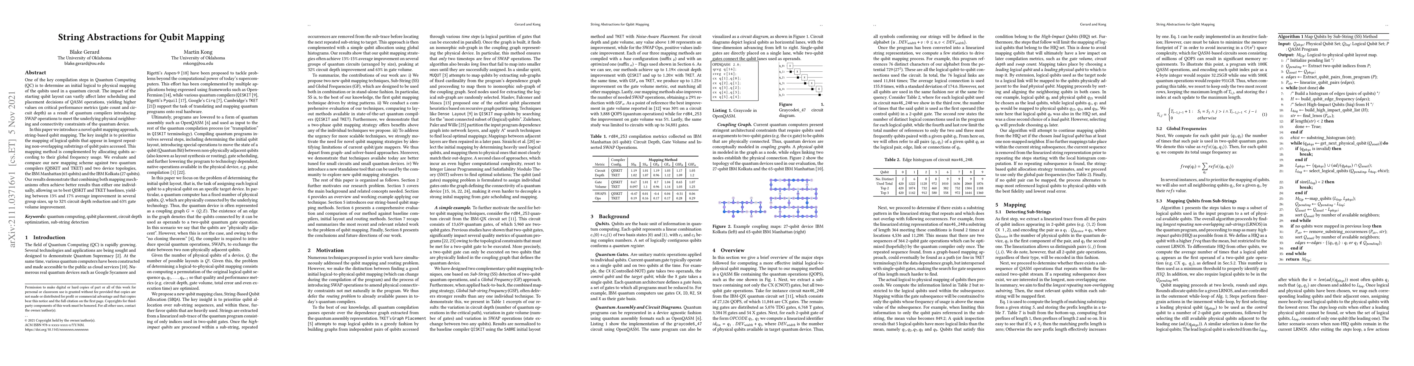 Researchers introduced a novel qubit mapping approach called string-based qubit mapping that improves quantum circuit performance metrics like gate count and depth by 13-17% and 32-63% respectively compared to existing compilers.