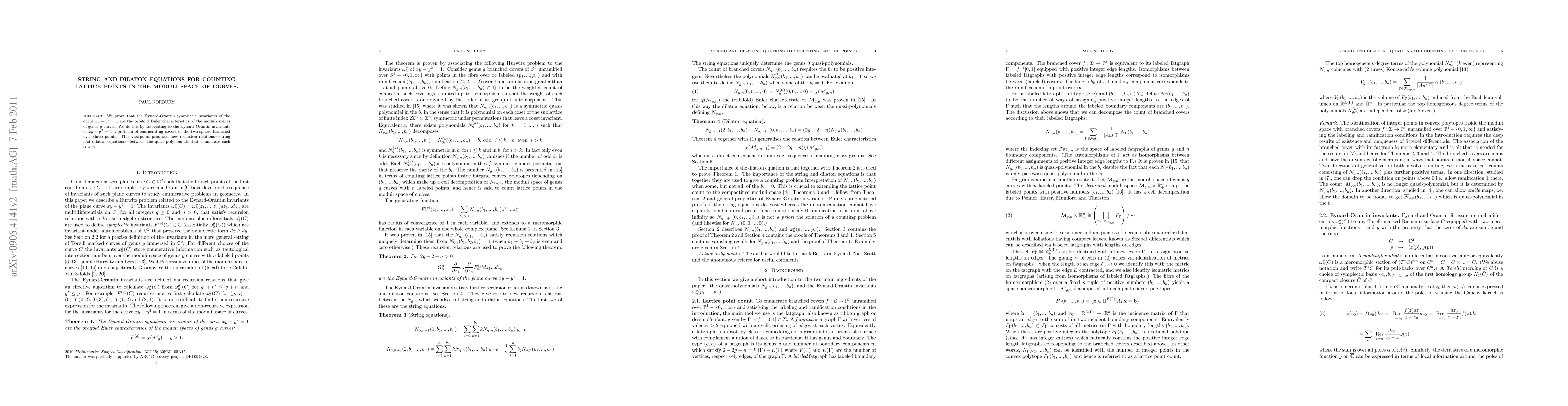 Researchers prove that Eynard-Orantin symplectic invariants can be used to count lattice points in the moduli space of curves, introducing new recursion relations between quasi-polynomials.