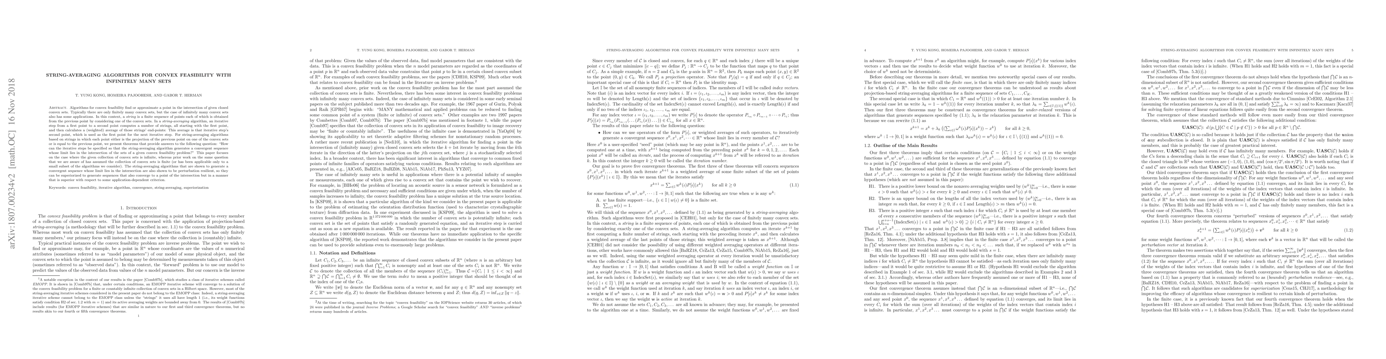 This paper introduces string-averaging algorithms for solving convex feasibility problems involving infinitely many convex sets. It presents theorems specifying conditions under which these algorithms generate convergent sequences whose limits lie within the intersection of the sets, and demonstrates their resilience to perturbations.