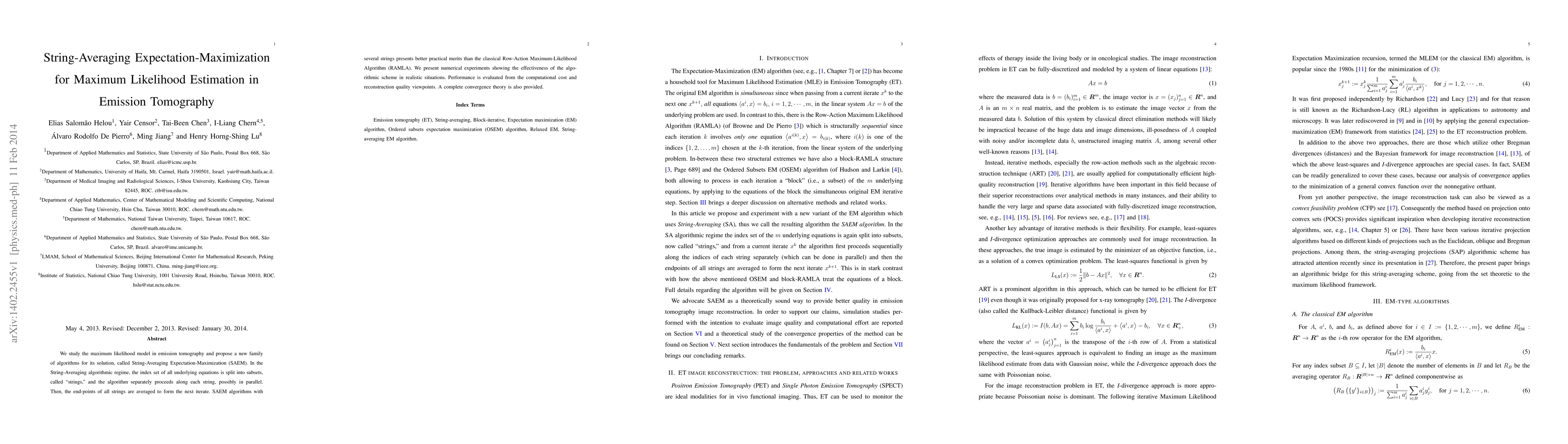 This paper proposes a new String-Averaging Expectation-Maximization (SAEM) algorithm for solving maximum likelihood estimation in emission tomography. The SAEM algorithm splits the problem into parallel "strings" and averages their end-points for iterative improvements, demonstrating better performance than the classical RAMLA.