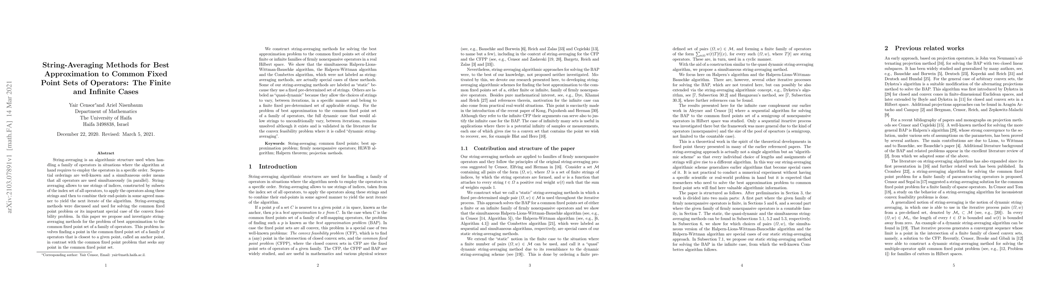 This paper proposes string-averaging methods for finding the best approximation to the common fixed point set of operators, applicable to both finite and infinite families. It demonstrates that several existing algorithms are special cases of these new methods, which can be static or quasi-dynamic based on the string selection strategy.