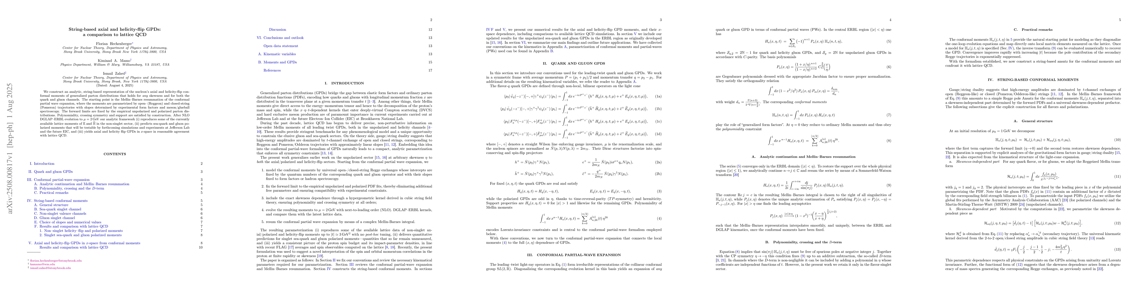 We construct an analytic, string based representation of the nucleon's axial and helicity flip conformal moments of generalized parton distributions that holds for any skewness and for both the quark and gluon channels. The starting point is the Mellin Barnes resummation of the conformal partial wave expansion, where the moments are parametrized by open (Reggeon) and closed string (Pomeron) trajectories with slopes determined by experimental form factors and meson/glueball spectroscopy. The forward limits are fixed by the empirical unpolarized and polarized parton distributions. Polynomiality, crossing symmetry and support are satisfied by construction. After NLO DGLAP ERBL evolution to $\mu=2$ GeV our analytic framework (i) reproduces some of the currently available lattice moments of $\mathbb{E}$ and $\widetilde{\mathbb{H}}$ in the non singlet sector, (ii) predicts sea quark and gluon polarized moments that will be testable by forthcoming simulations and experiments at Jefferson Lab and the future EIC, and (iii) yields axial and helicity flip GPDs in $x$ space in reasonable agreement with lattice QCD.