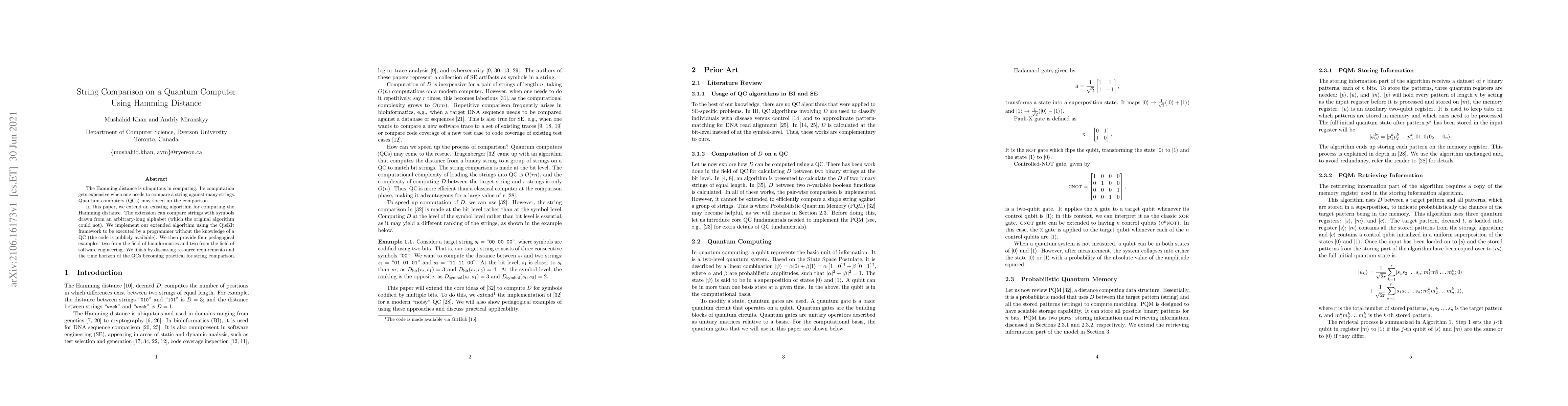 Researchers extended an algorithm to compute Hamming distance on a quantum computer, enabling faster string comparisons, with potential applications in bioinformatics and software engineering.
