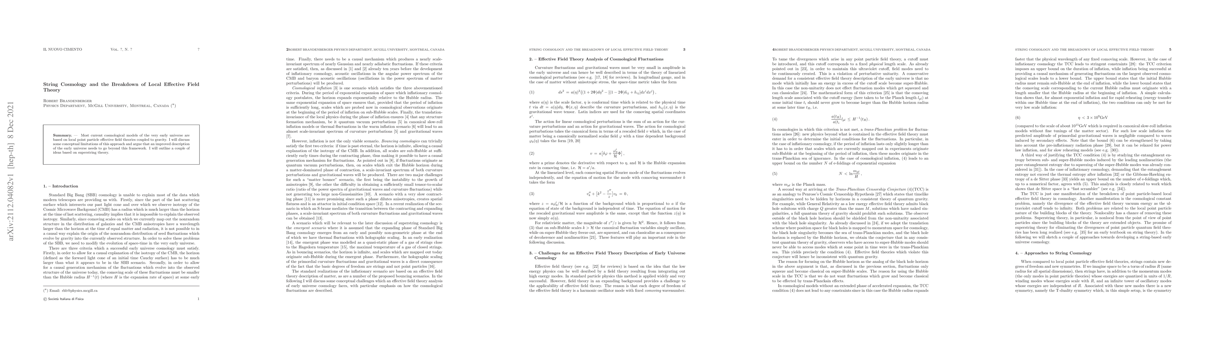 Summary: This paper critiques the limitations of local effective field theories in describing the early universe and proposes that string cosmology, grounded in superstring theory, offers a more comprehensive framework for understanding the cosmos's initial conditions.