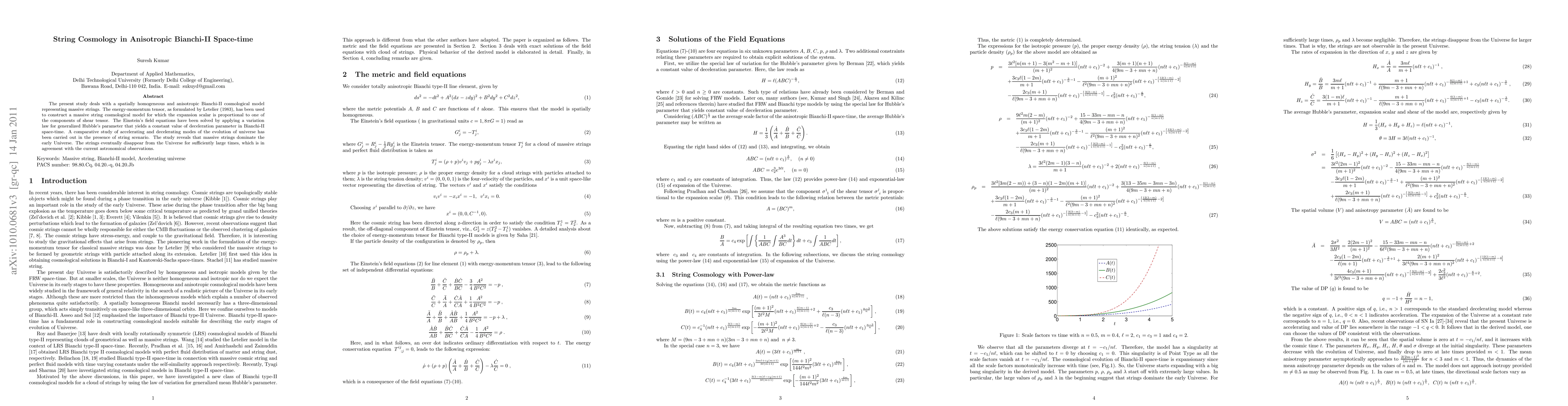 This paper explores a Bianchi-II cosmological model with massive strings, solving Einstein's equations to show a constant deceleration parameter. It finds that massive strings dominate early universe evolution but eventually vanish, aligning with current astronomical observations.