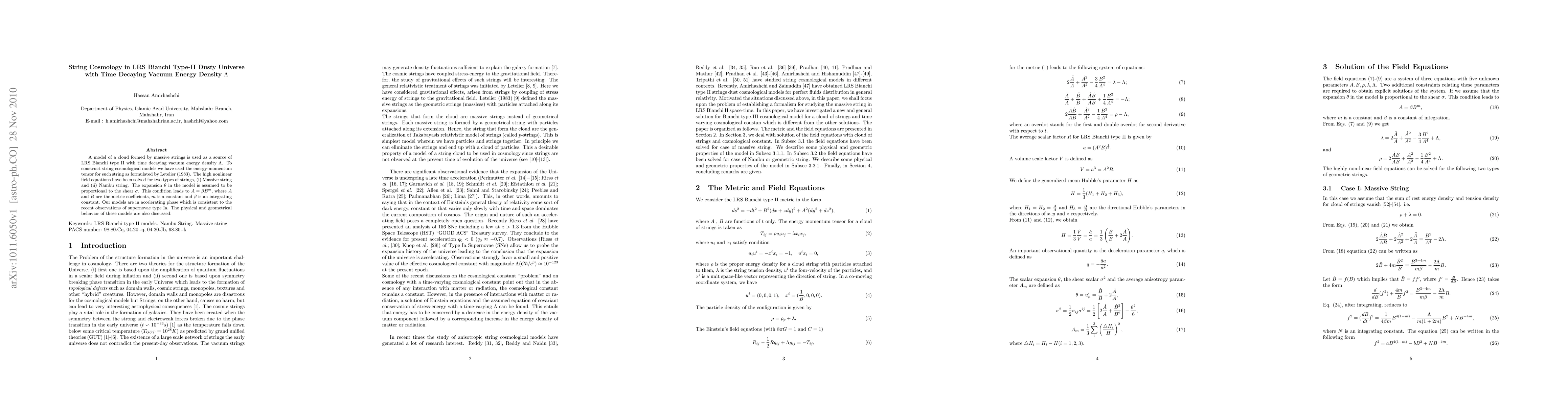 This paper explores string cosmology in a LRS Bianchi Type-II universe with a time-decaying vacuum energy density, using massive and Nambu strings as sources. The models exhibit an accelerating expansion consistent with recent supernova observations, and discuss the physical and geometrical implications.