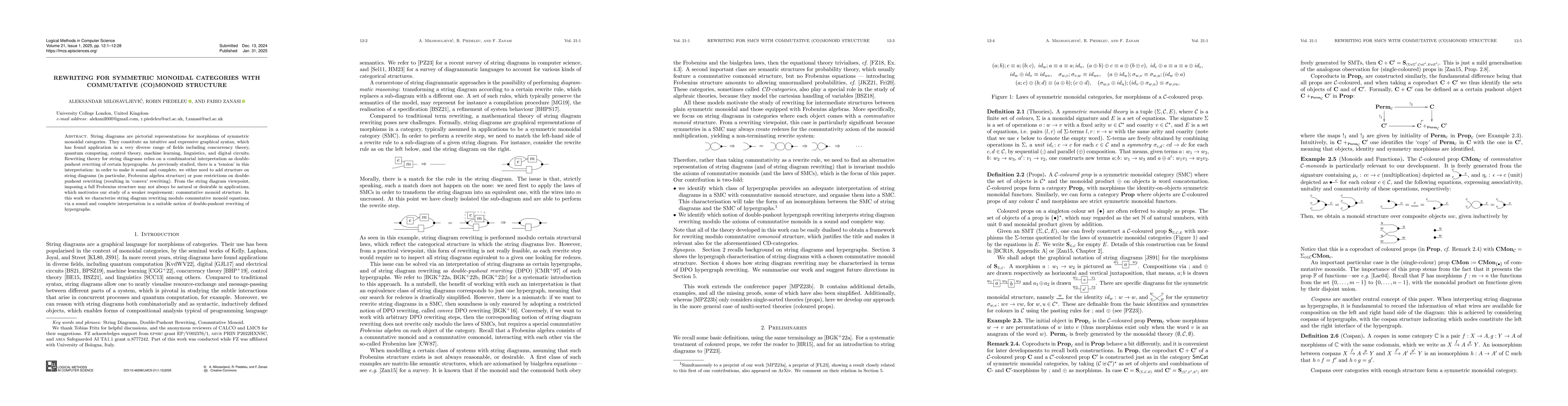 This paper studies string diagram rewriting with a focus on commutative monoid structure, offering a sound and complete interpretation through double-pushout rewriting of hypergraphs to address the tension between soundness and expressiveness in graphical syntax.