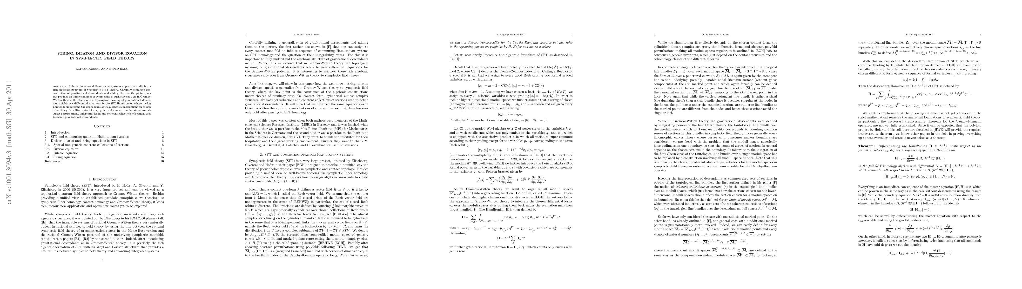 Infinite dimensional Hamiltonian systems appear naturally in the rich algebraic structure of Symplectic Field Theory. Carefully defining a generalization of gravitational descendants and adding them to the picture, one can produce an infinite number of symmetries of such systems . As in Gromov-Witten theory, the study of the topological meaning of gravitational descendants yields new differential equations for the SFT Hamiltonian, where the key point is to understand the dependence of the algebraic constructions on choices of auxiliary data like contact form, cylindrical almost complex structure, abstract perturbations, differential forms and coherent collections of sections used to define gravitational descendants.