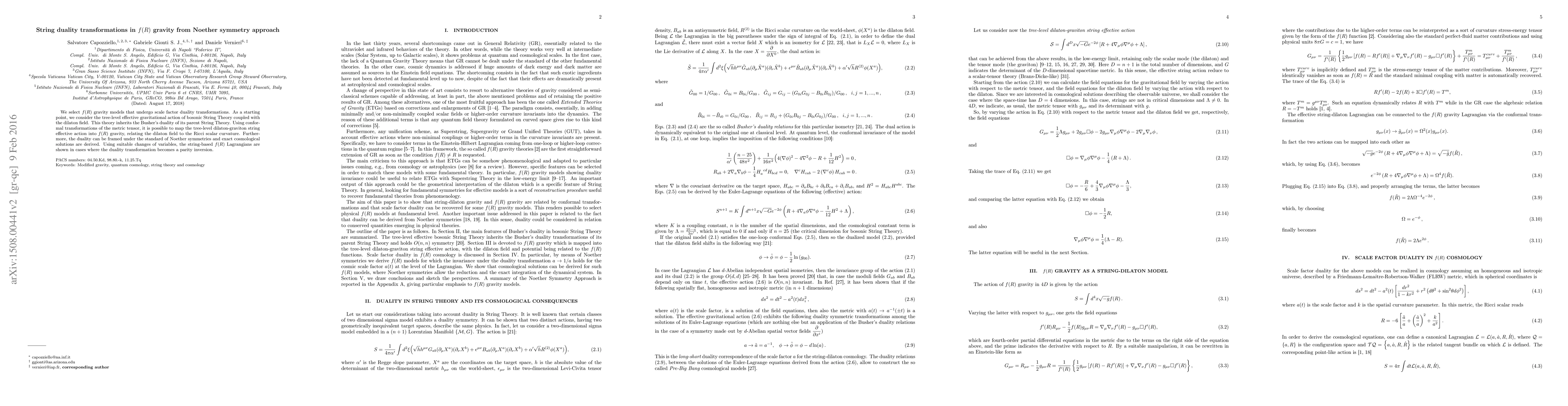 Summary: The paper explores $f(R)$ gravity models with scale factor duality transformations derived from the Noether symmetry approach, mapping the bosonic String Theory's effective action to $f(R)$ gravity through conformal transformations and deriving exact cosmological solutions. The duality transformation is demonstrated to be a parity inversion in certain $f(R)$ Lagrangians.