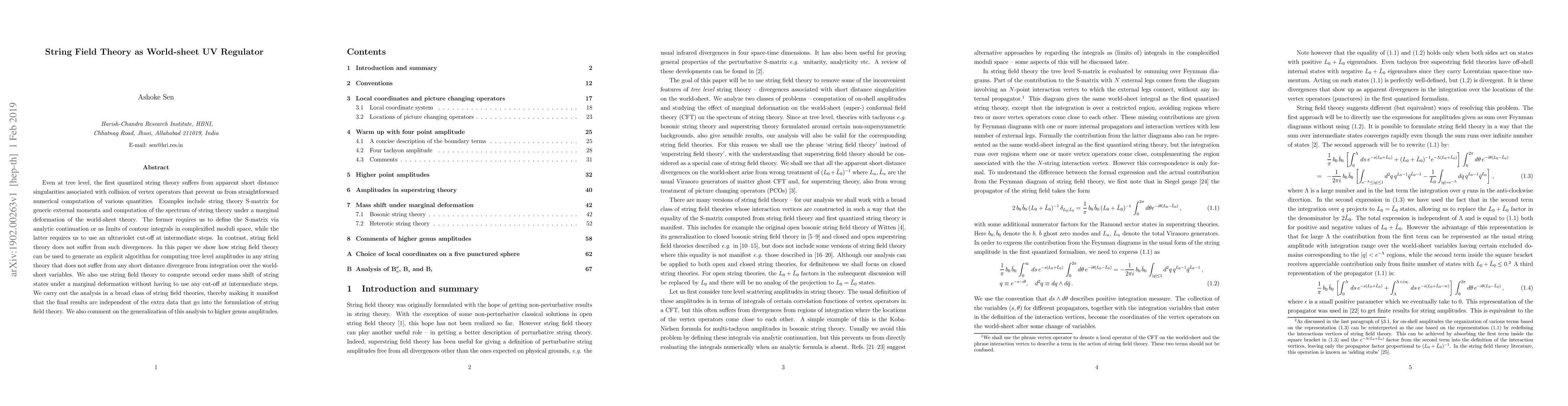 This paper demonstrates that string field theory can act as an effective UV regulator for world-sheet calculations in string theory, eliminating short distance singularities. It proposes an algorithm to compute tree level amplitudes and second order mass shifts without requiring intermediate cut-offs, showing the independence of final results from specific string field theory formulations.