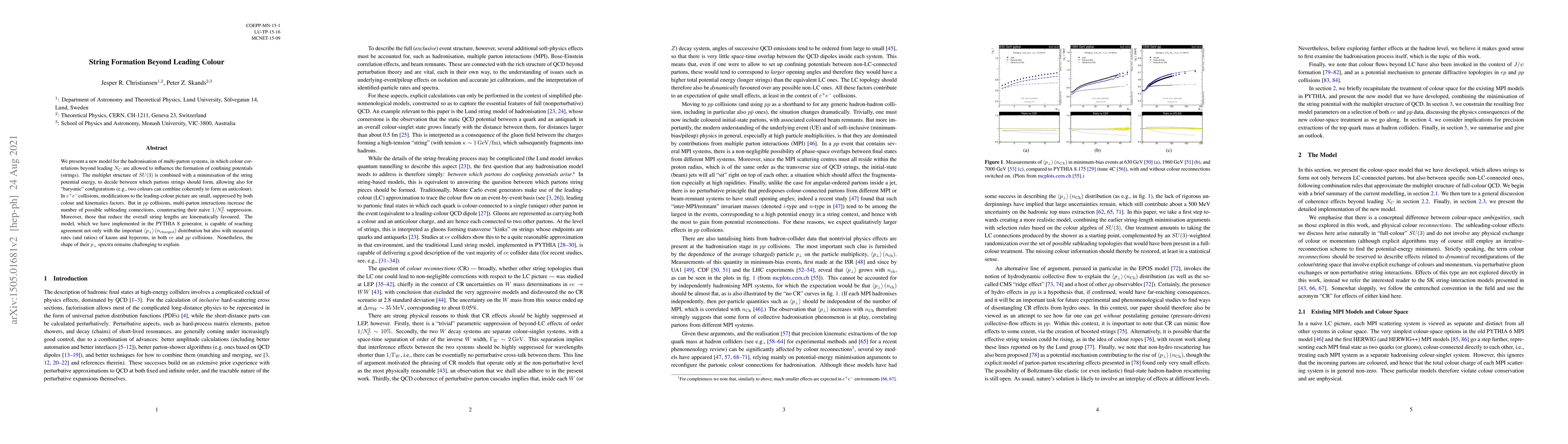 This research model proposes that color correlations beyond leading color can influence string formation in particle collisions, improving agreement with experimental data on kaon and hyperon rates and $p_ot$ spectra.
