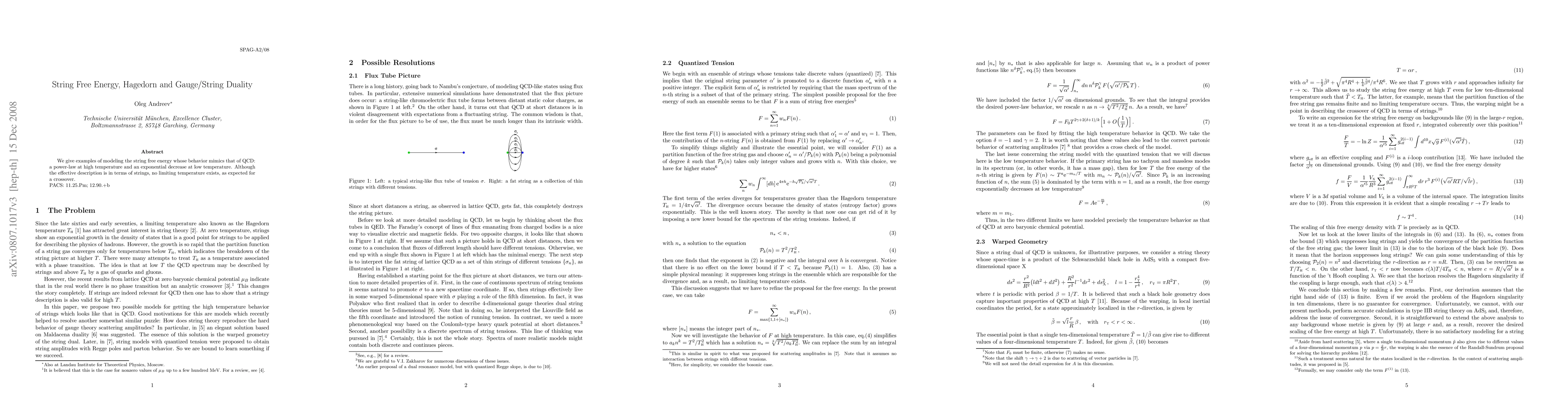 We give examples of modeling the string free energy whose behavior mimics that of QCD: a power-law at high temperature and an exponential decrease at low temperature. Although the effective description is in terms of strings, no limiting temperature exists, as expected for a crossover.