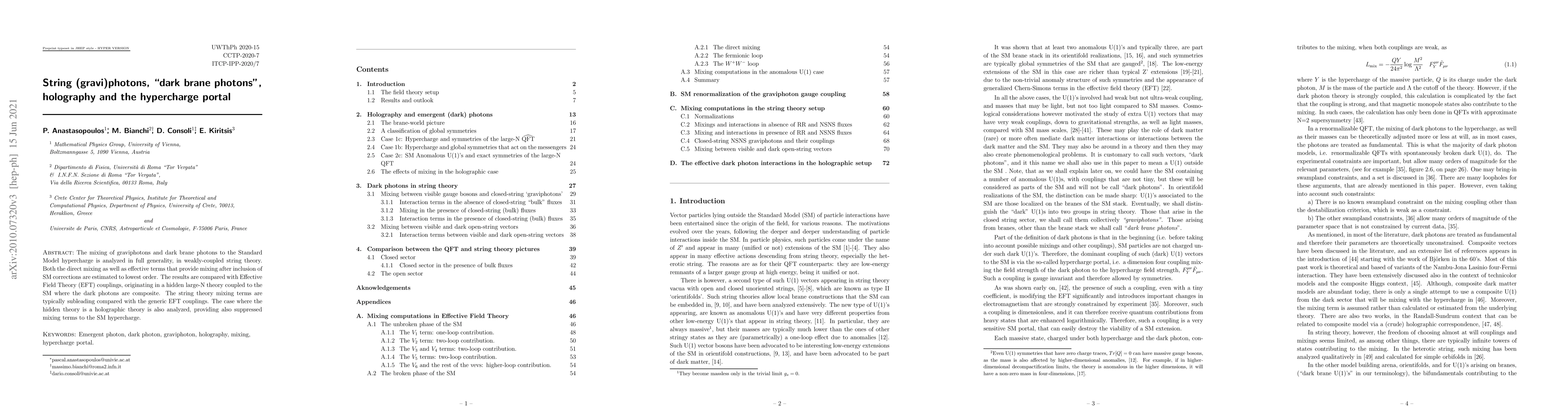 Researchers analyzed mixing of graviphotons and dark brane photons with the Standard Model hypercharge in string theory, finding that string theory terms are typically subleading to effective field theory couplings.