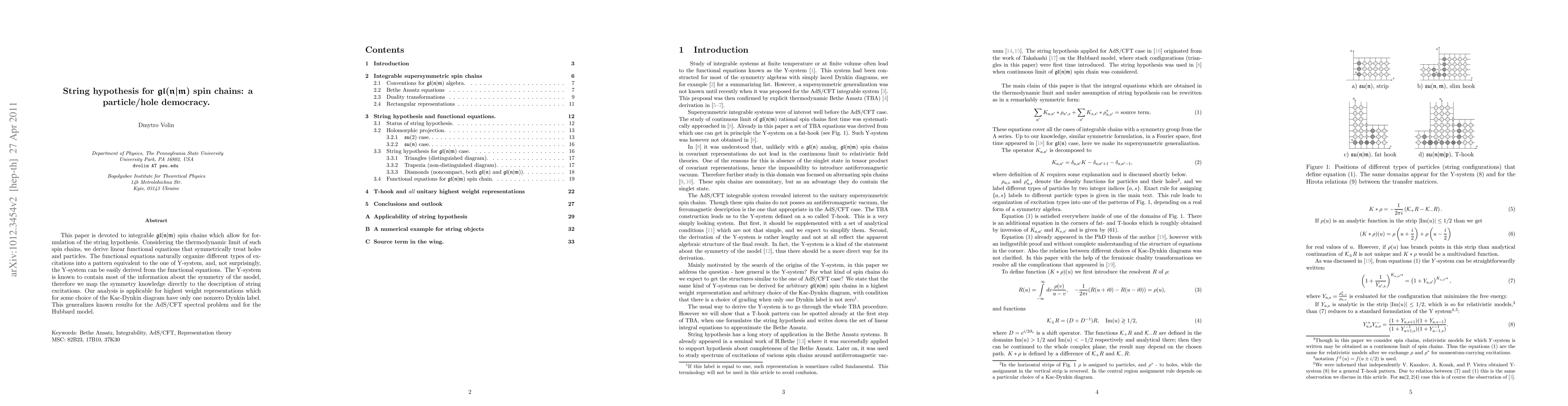 This paper explores integrable gl(n|m) spin chains and formulates the string hypothesis, deriving linear functional equations that symmetrically treat particles and holes. The analysis maps symmetry knowledge to string excitations, generalizing results for the AdS/CFT spectral problem and the Hubbard model.