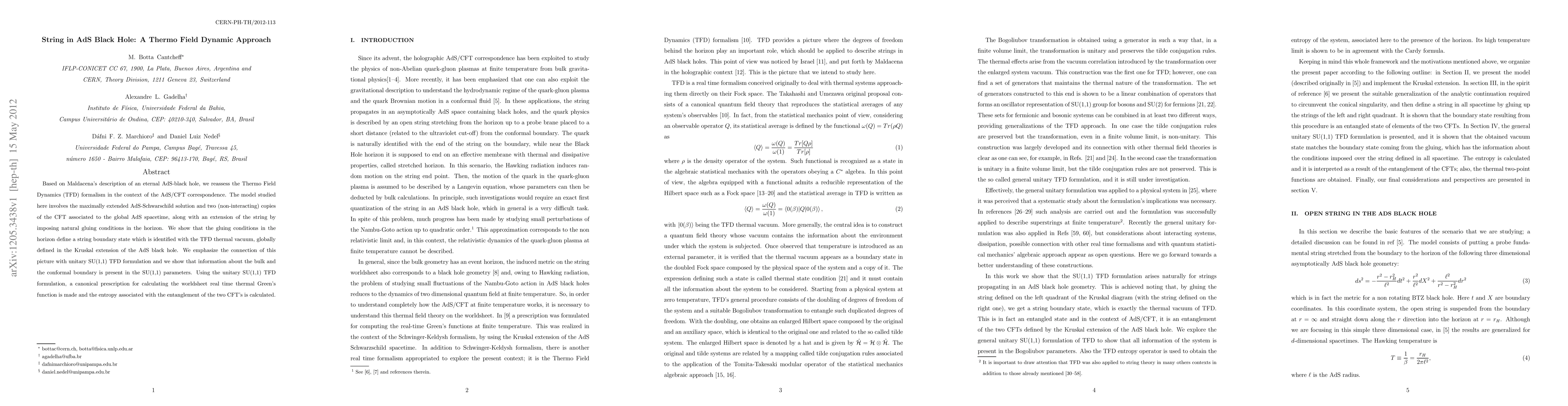 Based on Maldacena's description of an eternal AdS-black hole, we reassess the Thermo Field Dynamics (TFD) formalism in the context of the AdS/CFT correspondence. The model studied here involves the maximally extended AdS-Schwarschild solution and two (non-interacting) copies of the CFT associated to the global AdS spacetime, along with an extension of the string by imposing natural gluing conditions in the horizon. We show that the gluing conditions in the horizon define a string boundary state which is identified with the TFD thermal vacuum, globally defined in the Kruskal extension of the AdS black hole. We emphasize the connection of this picture with unitary SU(1,1) TFD formulation and we show that information about the bulk and the conformal boundary is present in the SU(1,1) parameters. Using the unitary SU(1,1) TFD formulation, a canonical prescription for calculating the worldsheet real time thermal Green's function is made and the entropy associated with the entanglement of the two CFT's is calculated.