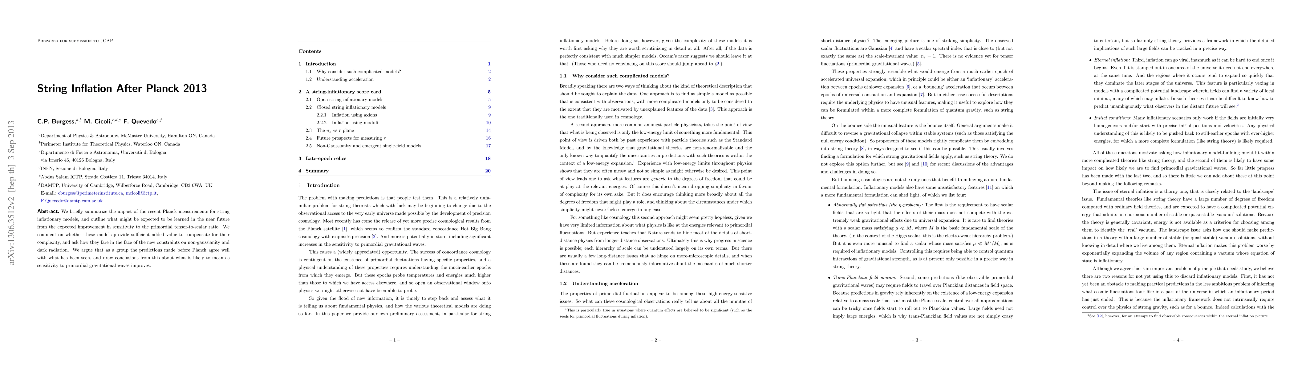 This paper evaluates the implications of the 2013 Planck measurements for string inflationary models, discussing their alignment with observed data and the potential future insights from enhanced sensitivity to the primordial tensor-to-scalar ratio. It assesses whether the complexity of these models justifies their predictive value, especially under new constraints on non-Gaussianity and dark radiation.