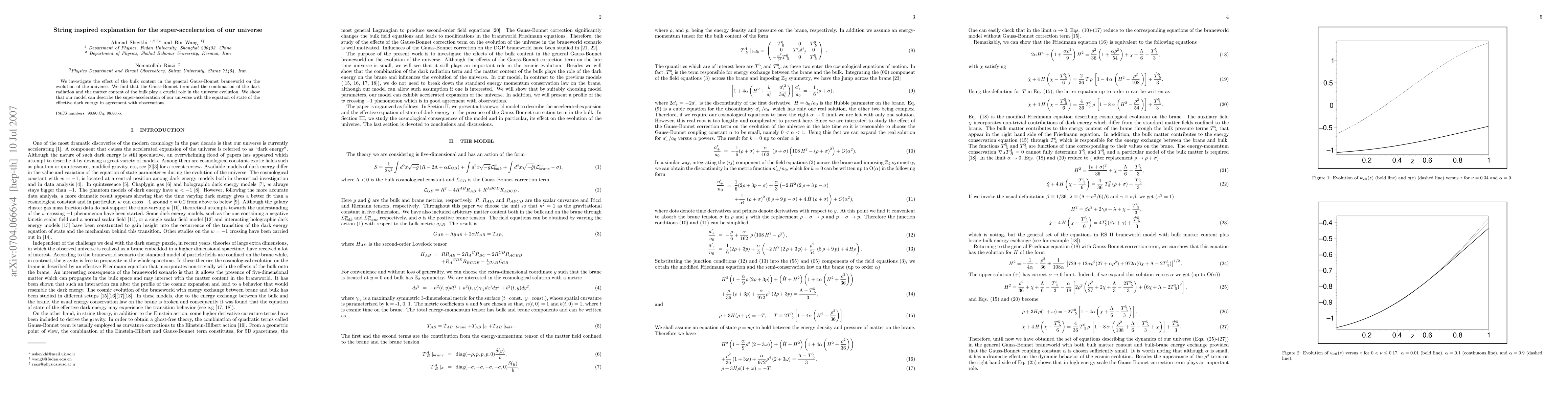 This research explores how bulk content in the general Gauss-Bonnet braneworld model influences the universe's evolution, finding that the Gauss-Bonnet term and bulk matter/radiation content are key. The model successfully describes the universe's observed super-acceleration, aligning with cosmological observations.