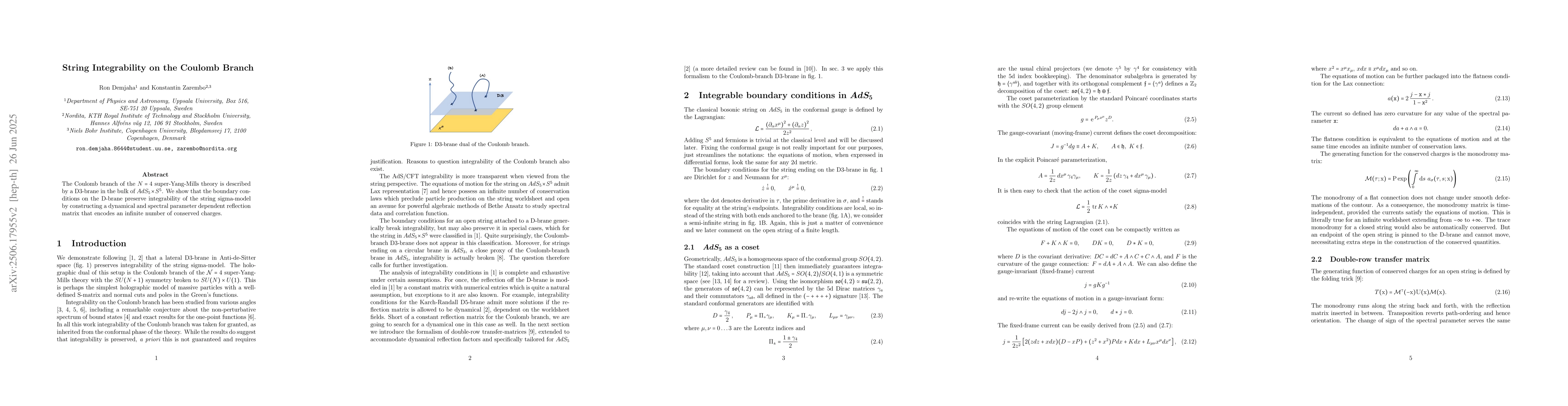 This work presents a novel approach to understanding the integrability of the Coulomb branch, which provides new insights into the behavior of strings on this surface.