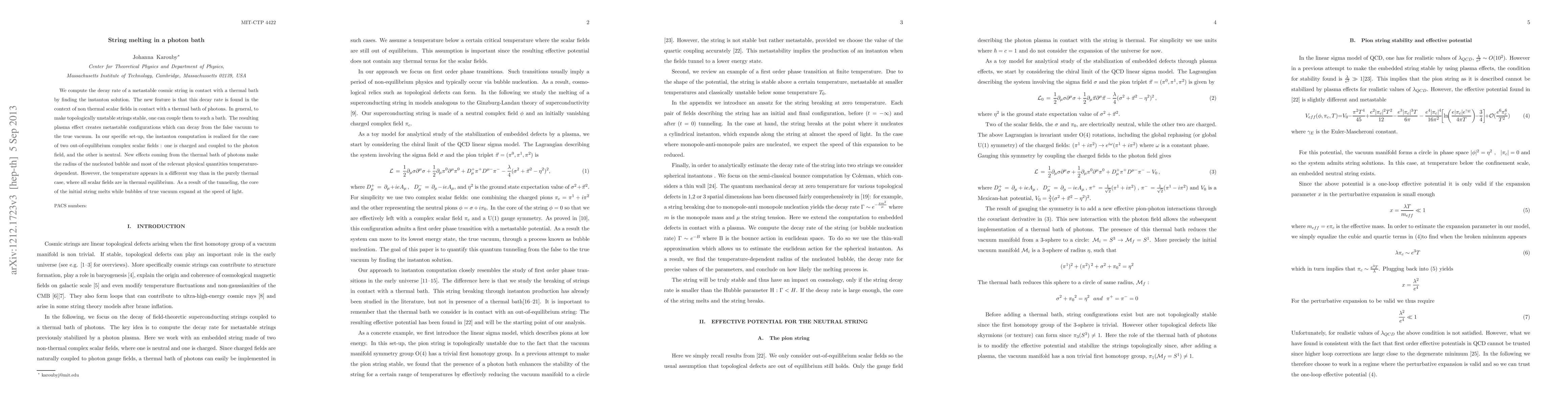 This paper investigates the decay rate of metastable cosmic strings in a thermal photon bath via instanton solutions, revealing new temperature-dependent effects on the string's properties and the nucleation of true vacuum bubbles. The study highlights the unique dynamics when non-thermal scalar fields interact with a thermal photon bath, leading to the melting of the string's core.