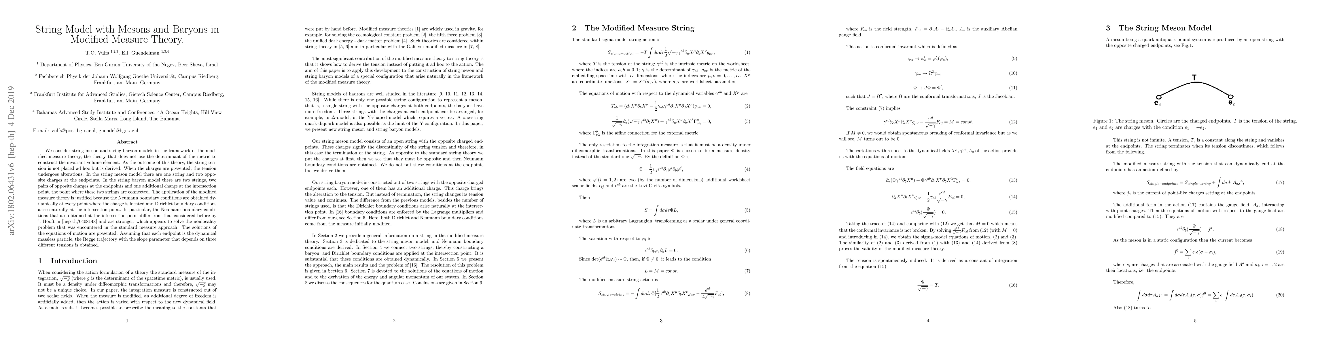 This paper explores string meson and baryon models within modified measure theory, deriving string tension without ad hoc assumptions. It presents dynamic Neumann boundary conditions and resolves the nonlocality issue, leading to a Regge trajectory with tension dependent on three parameters.