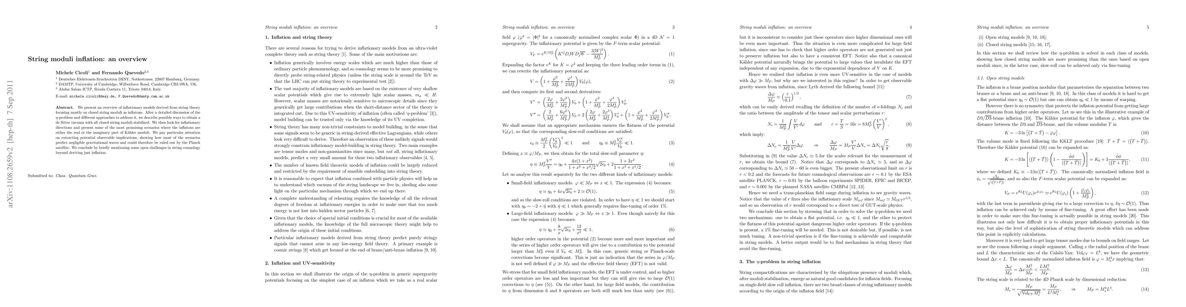 This paper reviews string moduli inflation models, discussing ways to stabilize closed string moduli and predict potential observable implications such as negligible gravitational waves.