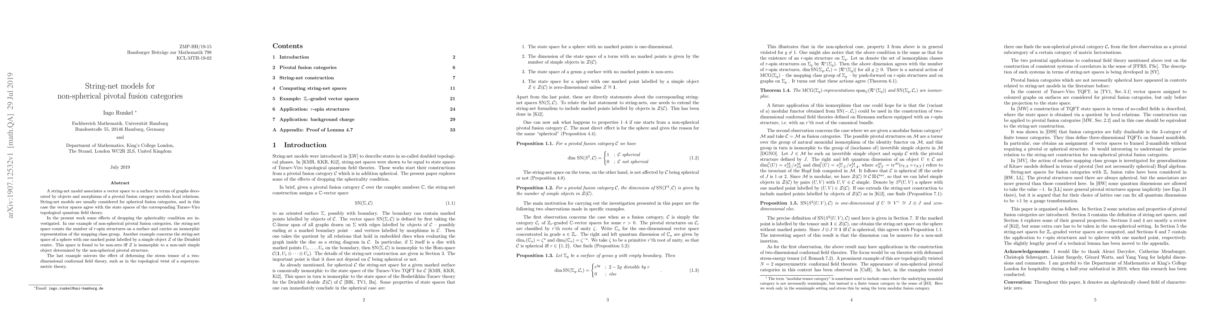 This paper explores string-net models for non-spherical pivotal fusion categories, demonstrating that they can count r-spin structures and represent mapping class groups, and that non-zero string-net spaces arise when simple objects in the Drinfeld center are non-unit, mirroring conformal field theory deformations.