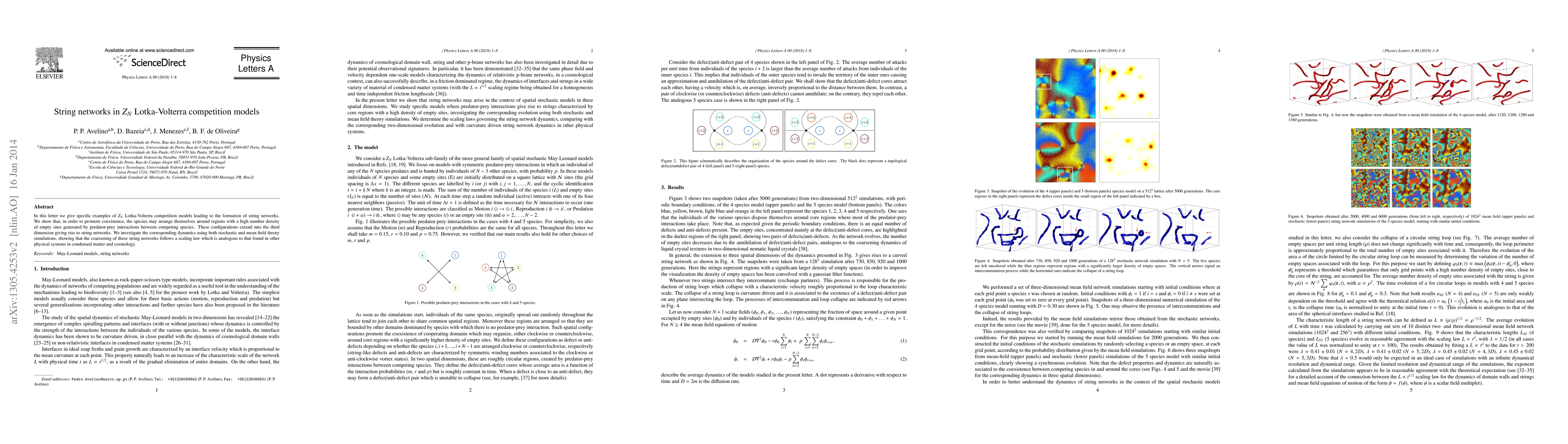 This paper explores Z_N Lotka-Volterra competition models that form string networks, demonstrating how species arrange around regions with high empty site densities to promote coexistence. The study uses both stochastic and mean field simulations to reveal a scaling law for the coarsening of these networks, similar to those found in condensed matter and cosmology.