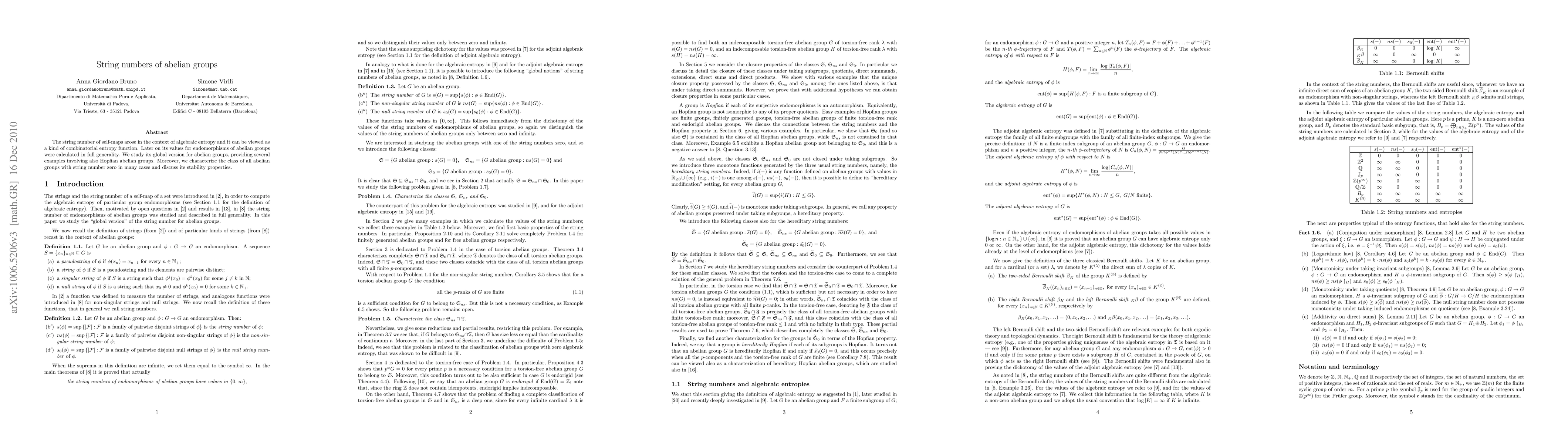The string number of self-maps arose in the context of algebraic entropy and it can be viewed as a kind of combinatorial entropy function. Later on its values for endomorphisms of abelian groups were calculated in full generality. We study its global version for abelian groups, providing several examples involving also Hopfian abelian groups. Moreover, we characterize the class of all abelian groups with string number zero in many cases and discuss its stability properties.