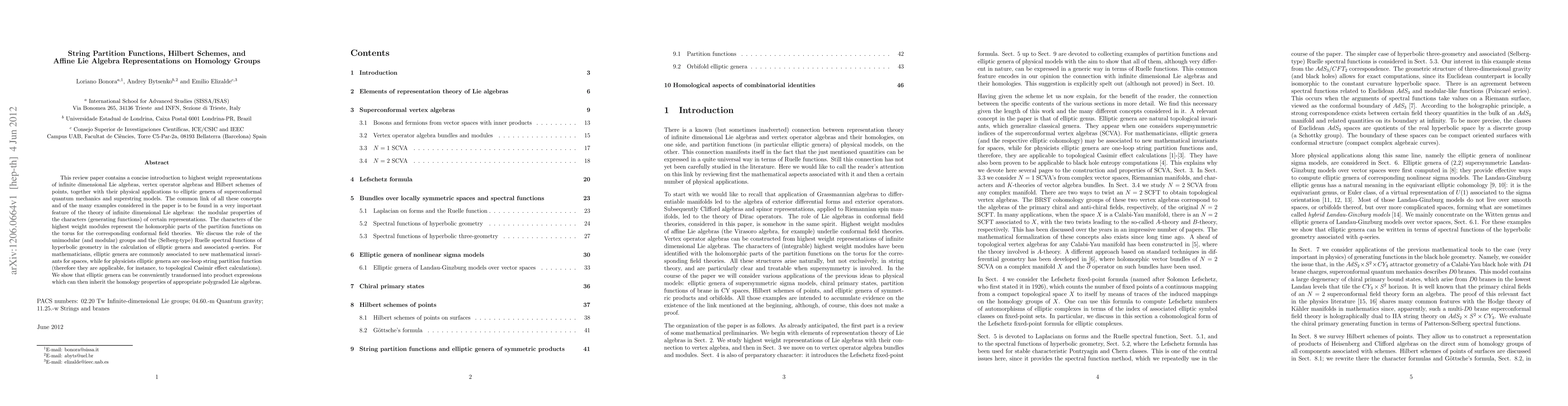 This review paper contains a concise introduction to highest weight representations of infinite dimensional Lie algebras, vertex operator algebras and Hilbert schemes of points, together with their physical applications to elliptic genera of superconformal quantum mechanics and superstring models. The common link of all these concepts and of the many examples considered in the paper is to be found in a very important feature of the theory of infinite dimensional Lie algebras: the modular properties of the characters (generating functions) of certain representations. The characters of the highest weight modules represent the holomorphic parts of the partition functions on the torus for the corresponding conformal field theories. We discuss the role of the unimodular (and modular) groups and the (Selberg-type) Ruelle spectral functions of hyperbolic geometry in the calculation of elliptic genera and associated $q$-series. For mathematicians, elliptic genera are commonly associated to new mathematical invariants for spaces, while for physicists elliptic genera are one-loop string partition function (therefore they are applicable, for instance, to topological Casimir effect calculations). We show that elliptic genera can be conveniently transformed into product expressions which can then inherit the homology properties of appropriate polygraded Lie algebras.