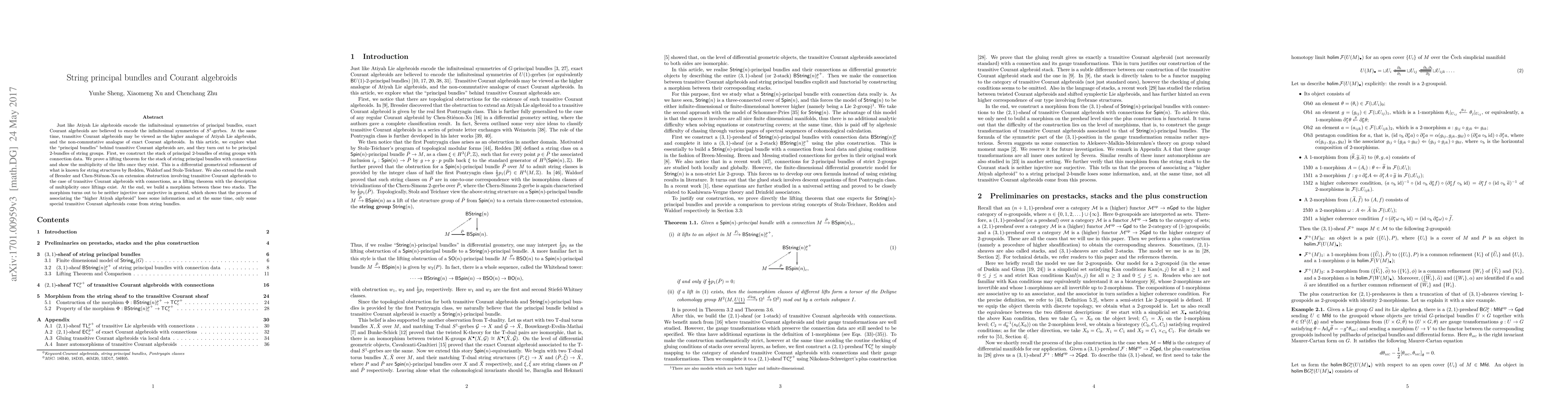 This paper investigates the infinitesimal symmetries encoded by transitive Courant algebroids, showing they correspond to principal 2-bundles of string groups. It constructs the stack of these string principal bundles with connection data and demonstrates a lifting theorem, highlighting that not all transitive Courant algebroids arise from string bundles.