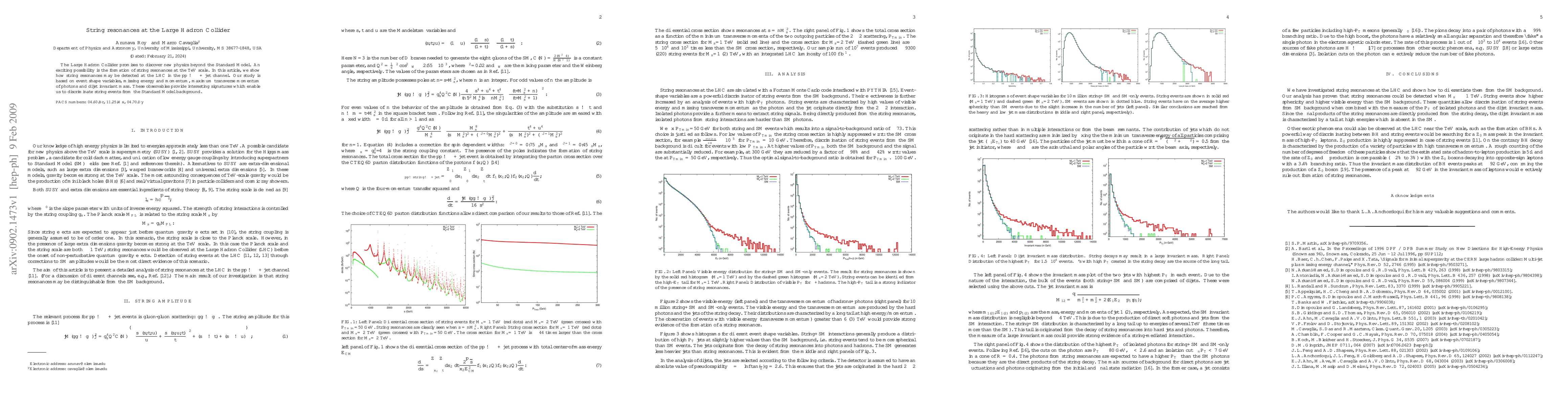This paper explores the potential for detecting string resonances at the Large Hadron Collider (LHC) in the $pp\to\gamma+jet$ channel, using event shape variables, missing energy and momentum, and other observables to distinguish these resonances from Standard Model backgrounds.