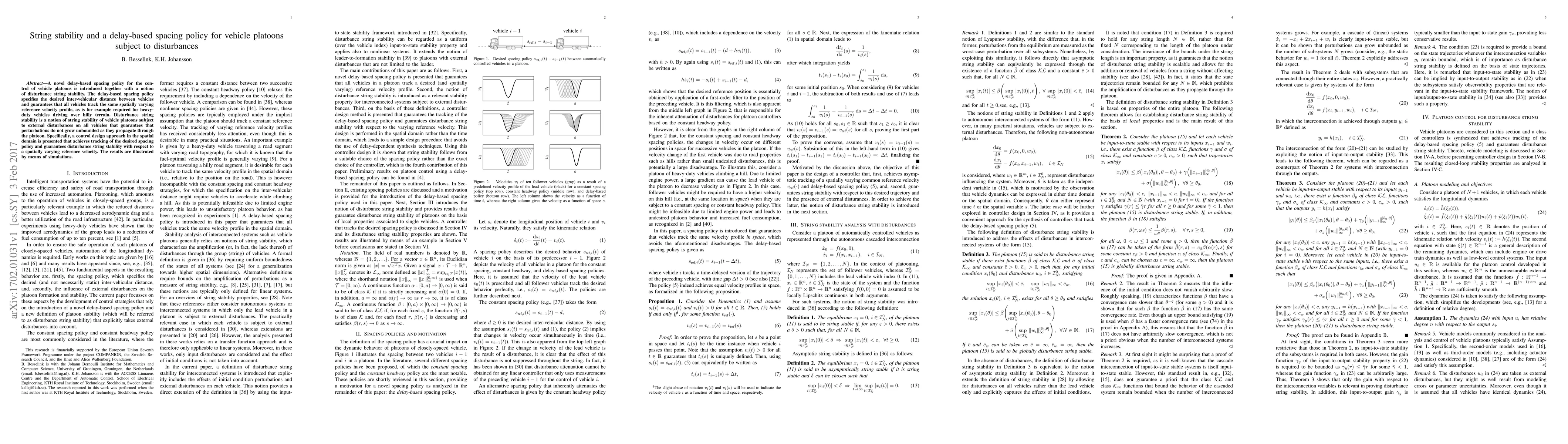 This paper introduces a delay-based spacing policy for vehicle platoon control and defines disturbance string stability, ensuring that perturbations do not grow unbounded as they propagate through the platoon. A spatial domain control design approach is presented to achieve desired spacing and guarantee string stability under external disturbances, validated through simulations.