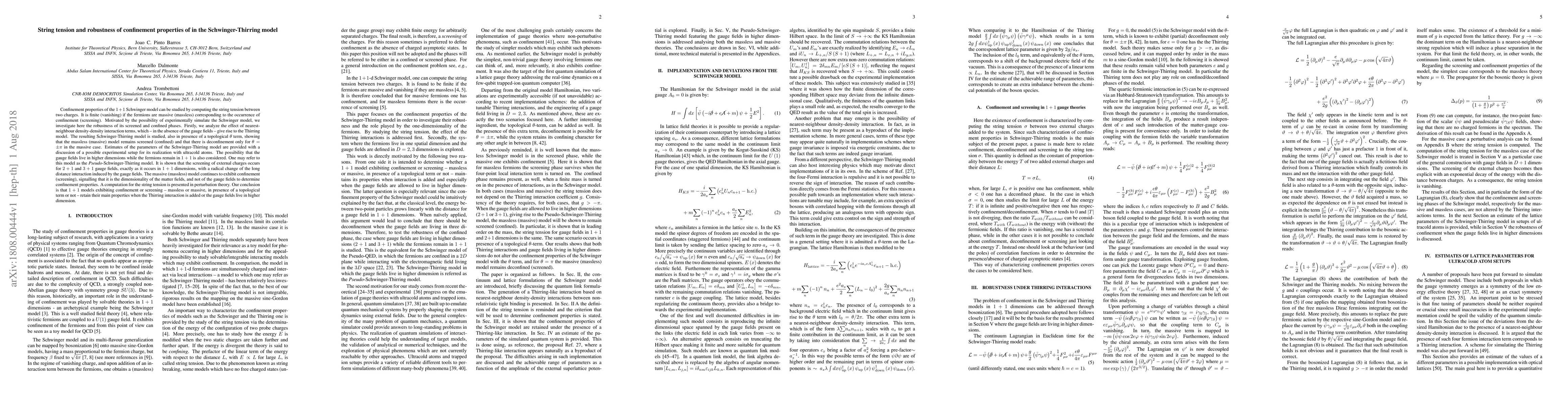 Confinement properties of the $1+1$ Schwinger model can bestudied by computing the string tension between two charges. It is finite (vanishing) if the fermions are massive (massless) corresponding to the occurrence of confinement (screening). Motivated by the possibility of experimentally simulate the Schwinger model, we investigate here the robustness of its screened and confined phases. Firstly, we analyze the effect of nearest-neighbour density-density interaction terms, which -- in the absence of the gauge fields -- give rise to the Thirring model. The resulting Schwinger-Thirring model is studied, also in presence of a topological $\theta$ term, showing that the massless (massive) model remains screened (confined) and that there is deconfinement only for $\theta=\pm\pi$ in the massive case. Estimates of the parameters of the Schwinger-Thirring model are provided with a discussion of a possible experimental setup for its realization with ultracold atoms. The possibility that the gauge fields live in higher dimensions while the fermions remain in $1+1$ is also considered. One may refer to this model as the Pseudo-Schwinger-Thirring model. It is shown that the screening of external charges occurs for $2+1$ and $3+1$ gauge fields, exactly as it occurs in $1+1$ dimensions, with a radical change of the long distance interaction induced by the gauge fields. The massive (massless) model continues to exhibit confinement (screening), signalling that it is the dimensionality of the matter fields, and not of the gauge fields to determine confinement properties. A computation for the string tension is presented in perturbation theory. Our conclusion is that $1+1$ models exhibiting confinement or screening -- massless or massive, in presence of a topological term or not -- retain their main properties when the Thirring interaction is added or the gauge fields live in higher dimension.
