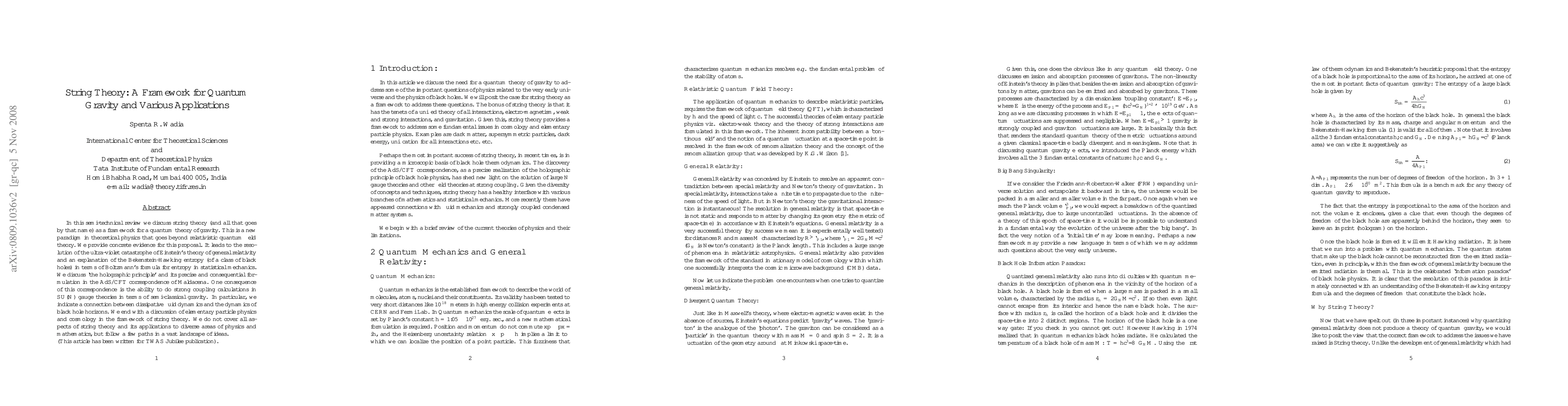 In this semi-technical review we discuss string theory (and all that goes by that name) as a framework for a quantum theory of gravity. This is a new paradigm in theoretical physics that goes beyond relativistic quantum field theory. We provide concrete evidence for this proposal. It leads to the resolution of the ultra-violet catastrophe of Einstein's theory of general relativity and an explanation of the Bekenstein-Hawking entropy (of a class of black holes) in terms of Boltzmann's formula for entropy in statistical mechanics. We discuss `the holographic principle' and its precise and consequential formulation in the AdS/CFT correspondence of Maldacena. One consequence of this correspondence is the ability to do strong coupling calculations in SU(N) gauge theories in terms of semi-classical gravity. In particular, we indicate a connection between dissipative fluid dynamics and the dynamics of black hole horizons. We end with a discussion of elementary particle physics and cosmology in the framework of string theory. We do not cover all aspects of string theory and its applications to diverse areas of physics and mathematics, but follow a few paths in a vast landscape of ideas. (This article has been prepared for the TWAS Silver Jubilee)