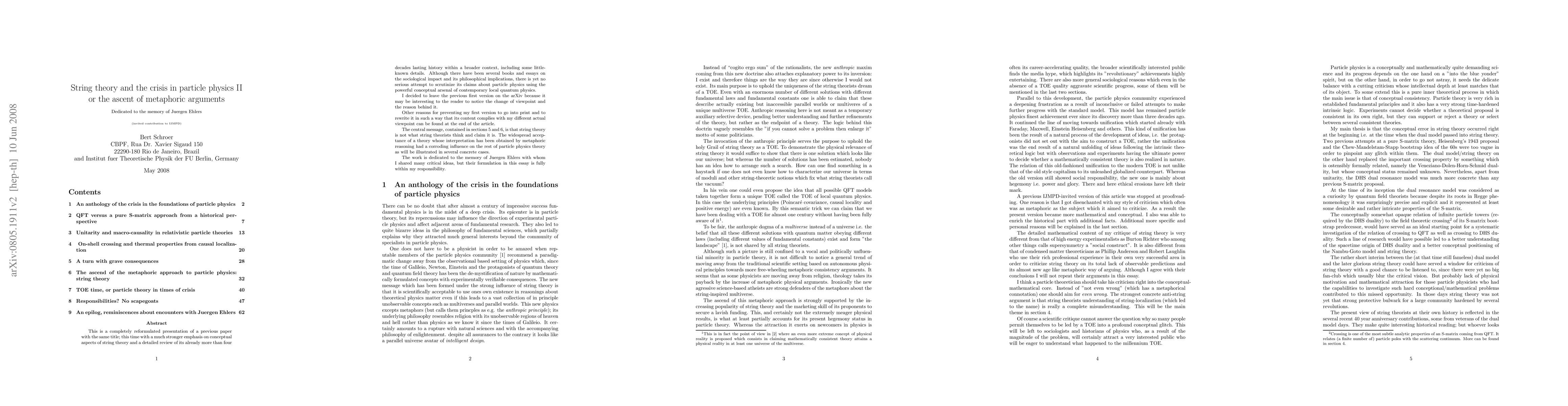 This paper revisits and reformulates a previous work on string theory, emphasizing its conceptual aspects and reviewing its history, while arguing that string theory's interpretation, derived from metaphoric reasoning, has negatively influenced particle physics. The author dedicates the work to Juergen Ehlers, asserting the content is their own responsibility.