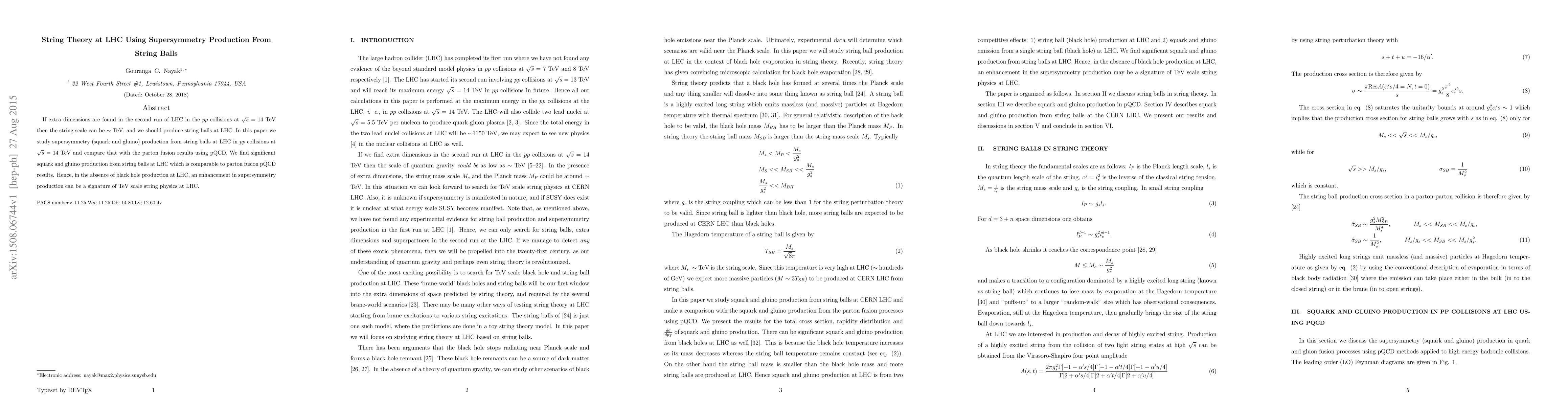 This paper investigates supersymmetry production from string balls at the LHC in $pp$ collisions at 14 TeV, comparing it to parton fusion results. It finds significant squark and gluino production from string balls, suggesting that enhanced supersymmetry production could indicate TeV scale string physics if black hole production remains absent.