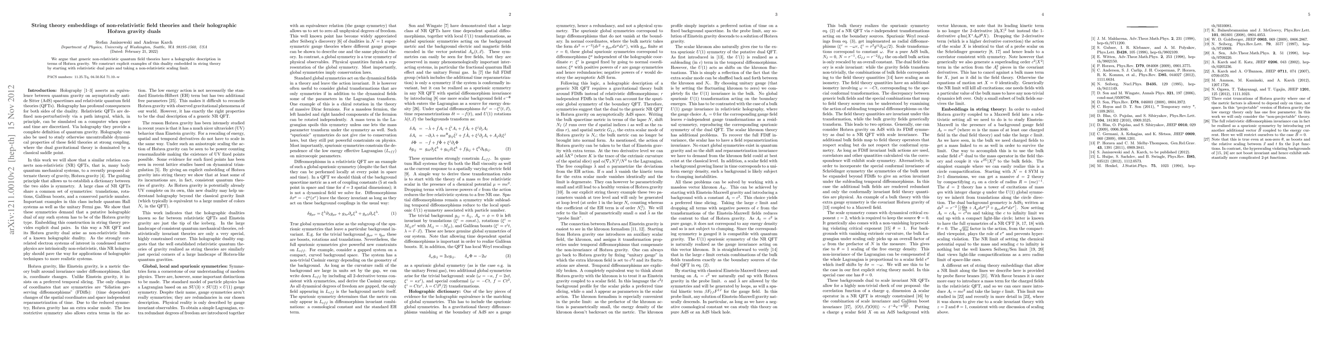 Summary: This paper explores the holographic duality between non-relativistic quantum field theories and Horava gravity, demonstrating that such theories can be described through Horava gravity duals embedded in string theory by taking a non-relativistic limit from relativistic dual pairs.