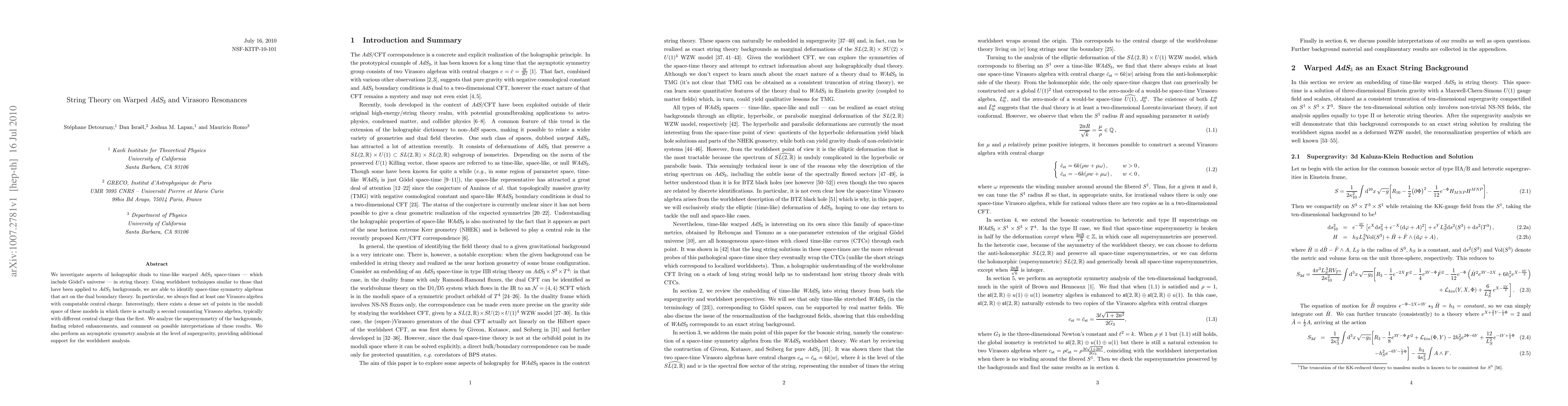 The paper introduces a method to identify Virasoro algebras in warped AdS_3 backgrounds using worldsheet techniques, extending the applicability of holographic duality to non-standard space-time geometries.