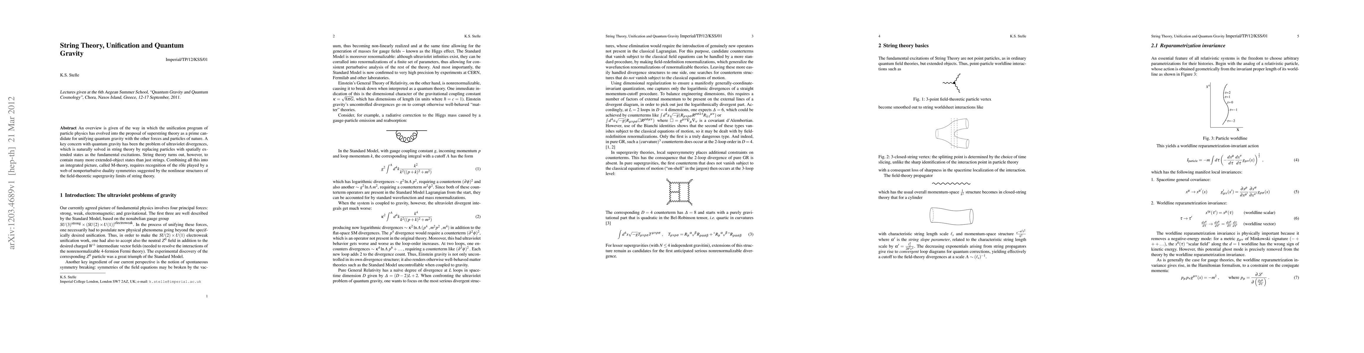 This paper discusses the evolution of superstring theory as a leading candidate for unifying quantum gravity with other fundamental forces, solving ultraviolet divergences by replacing particles with extended objects. It also explores M-theory, which integrates various string theories through nonperturbative duality symmetries.